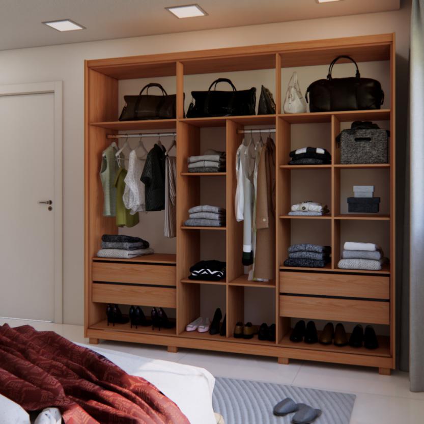 1- ROUPEIRO RIPADO 6 PORTAS 4 GAVETAS INTERNAS C/ PÉS - RP 5009